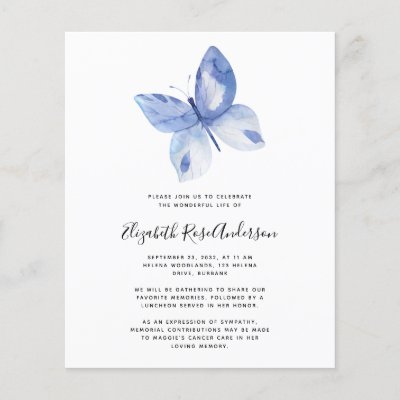 BUDGET Butterfly Celebration of Life Invitation