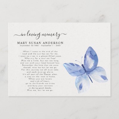 Ad: Simple Blue Butterfly Memorial Service Insert